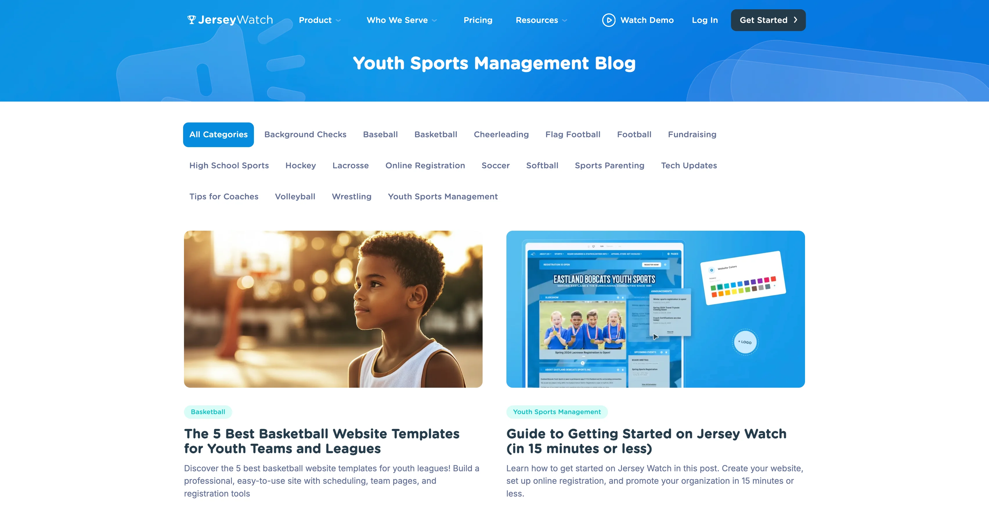 Parents, coaches, and league commissioners alike can learn useful tips and information from the Jersey Watch blog.